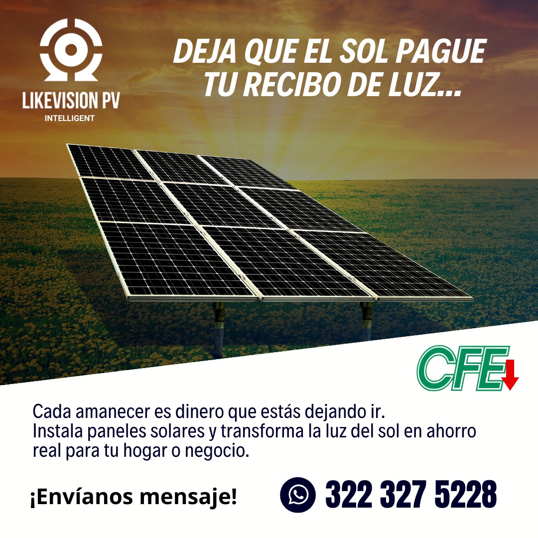 Cada amanecer es una oportunidad para ahorrar dinero. Con los paneles solares de LIKEVISION PV, transforma la energía del sol en un beneficio real para tu hogar o negocio y reduce tu dependencia de la CFE.